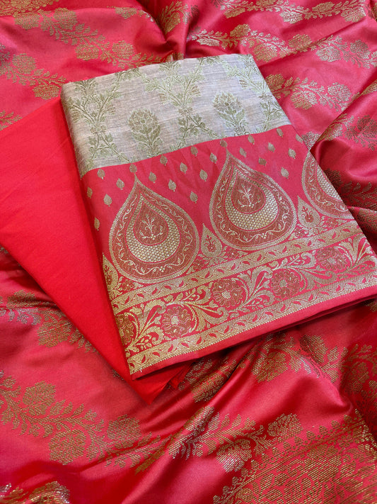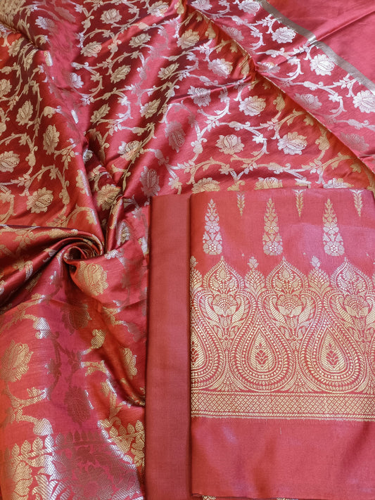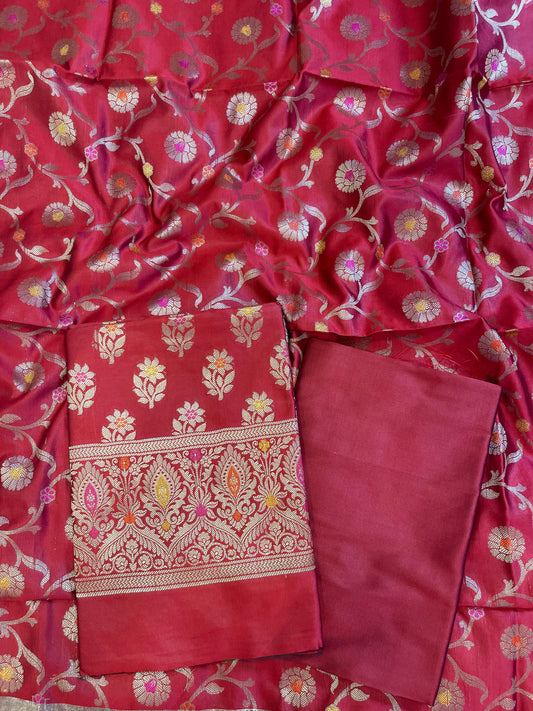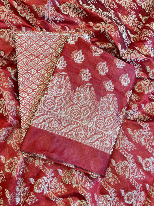 Red Tapeta Silk Floral Dual Zari Booti with Zari Jaal Dupatta Banarasi Suit 625AJ_TPT73