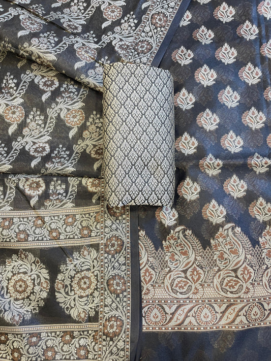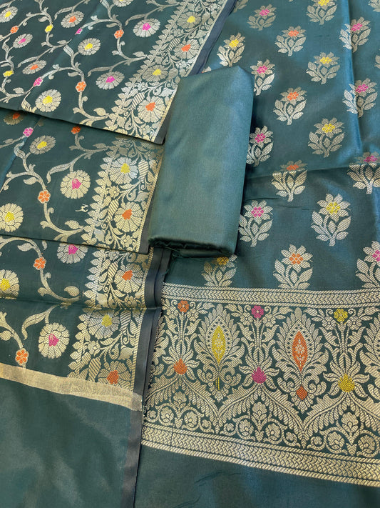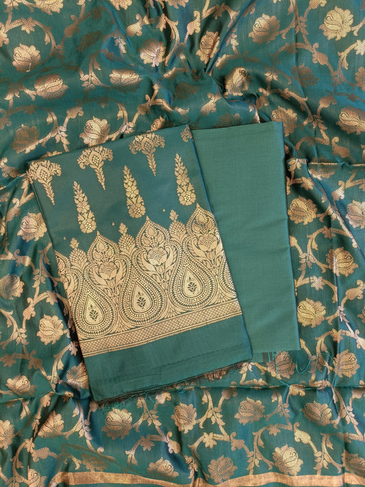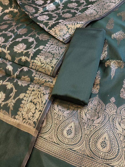Darkgreen Tapeta Silk Floral Dual Zari Booti with Zari Jaal Dupatta Banarasi Suit 625AJ_TPT74