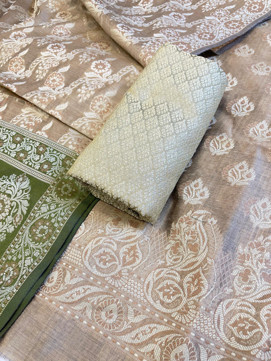 Beige Cotton Alfi Resham Floral Boota Contrast Green Border Banarasi Suit 600AJ_PJS8