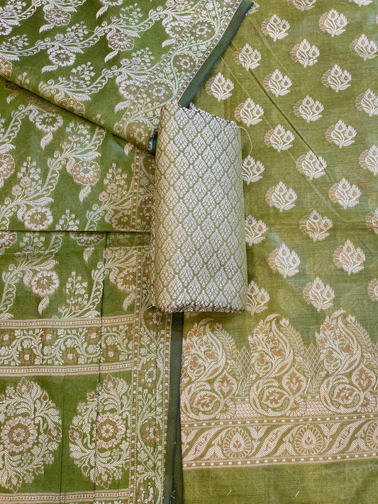 Green Cotton Floral Resham Booti with Floral Jaal Dupatta Banarasi Suit 600AJ_PJS18