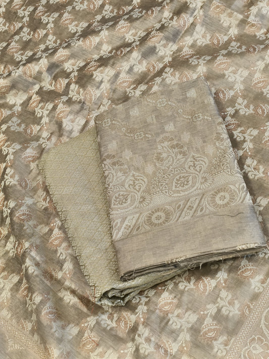 Beige Cotton Alfi Resham with Floral Booti Dupatta Banarasi Suit 600AJ_PJS2