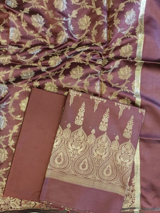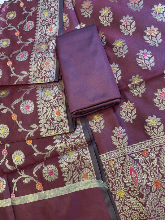 Wine Tapeta Silk Floral Dual Zari Booti with Zari Jaal Dupatta Banarasi Suit 625AJ_TPT77