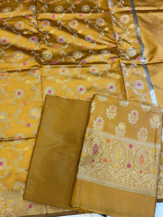 Mustard Gold Tapeta Silk Floral Dual Zari Booti with Zari Jaal Dupatta Banarasi Suit 625AJ_TPT75