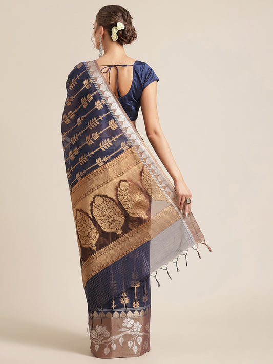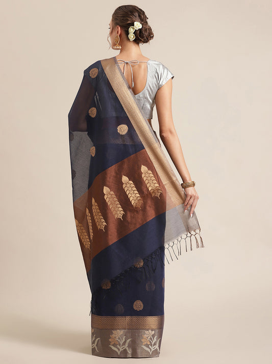 Faishana Presents Handwoven Blue Masrise Cotton Alfi Skirt Border With Brown Blouse Banarasi Saree