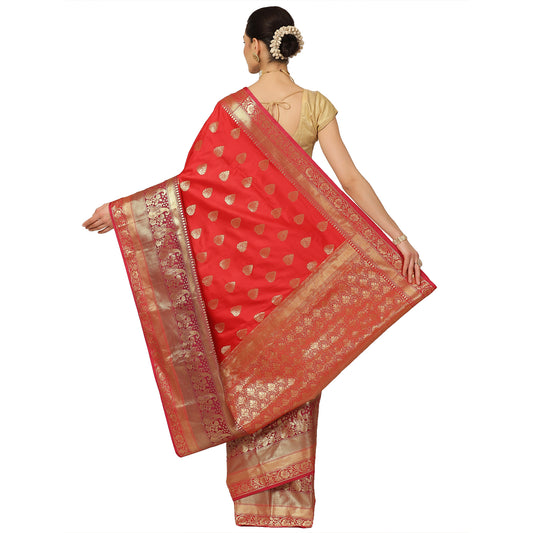 Faishana Presents Red Poly Cotton Zari Boota Skirt Border Banarasi Saree with Blouse Piece