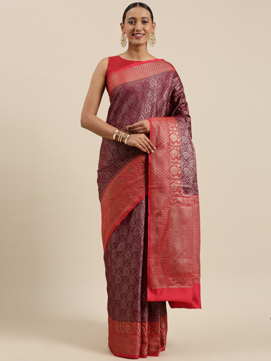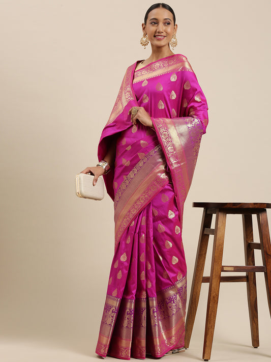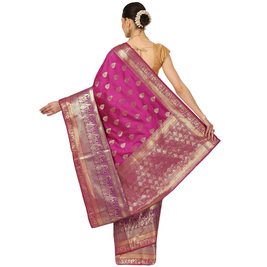 Faishana Presents Magenta Poly Cotton Zari Boota Skirt Border Banarasi Saree With Banarasi Saree