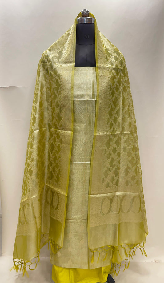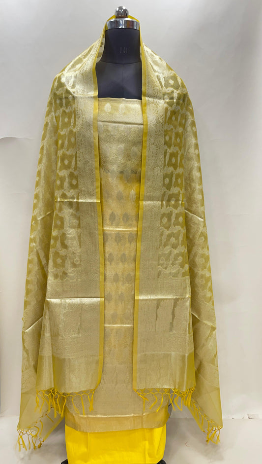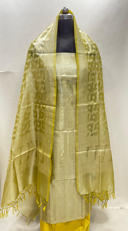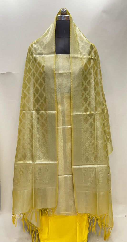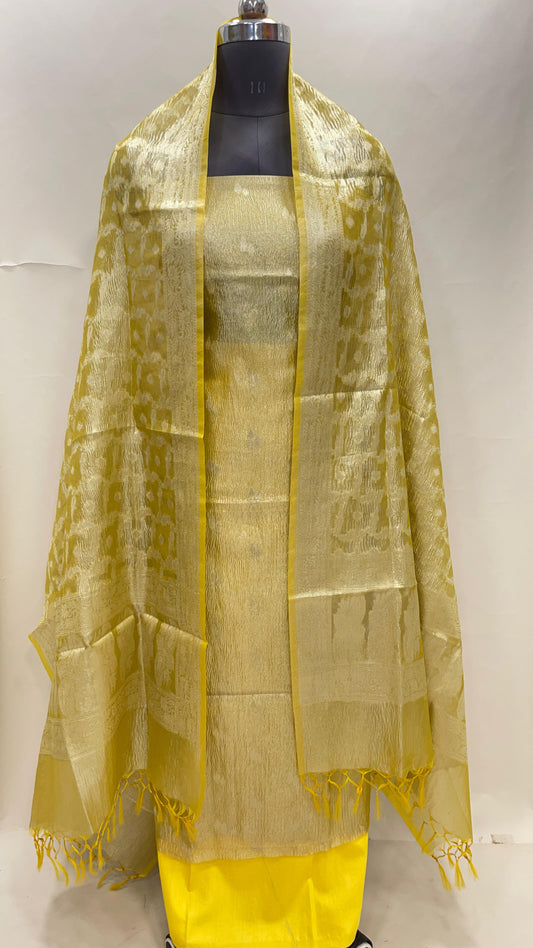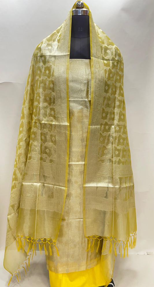 Puresilk Handloom Yellow Tissue Silk Banarasi 3 pcs Suit Set RHN_TSU10