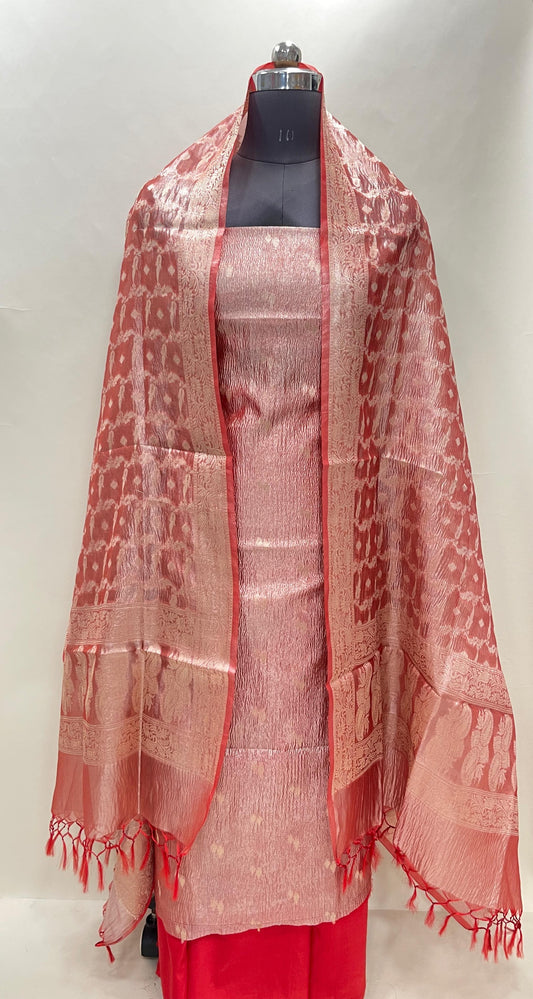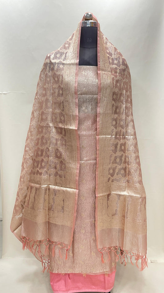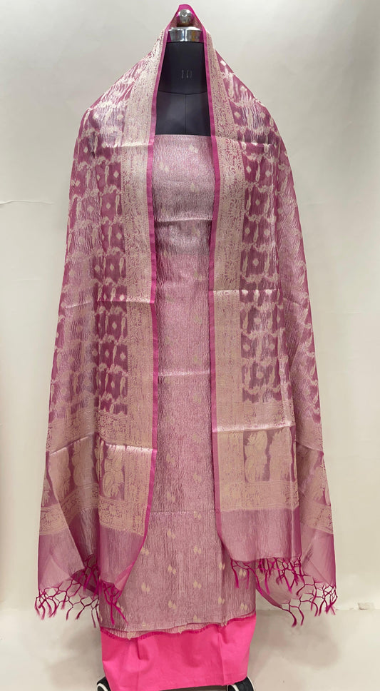 Puresilk Handloom Pink Cotton Banarasi 3 pcs Suit Set RHN_CTN6
