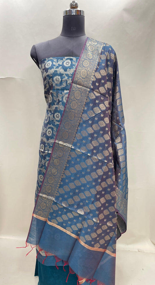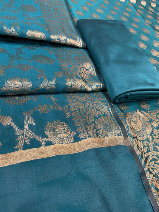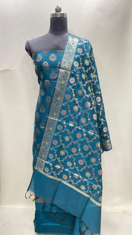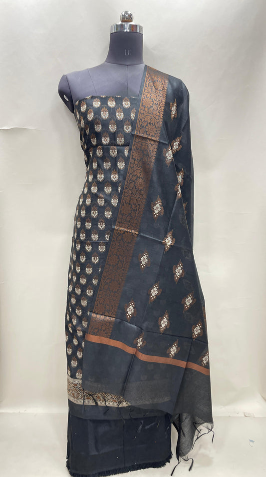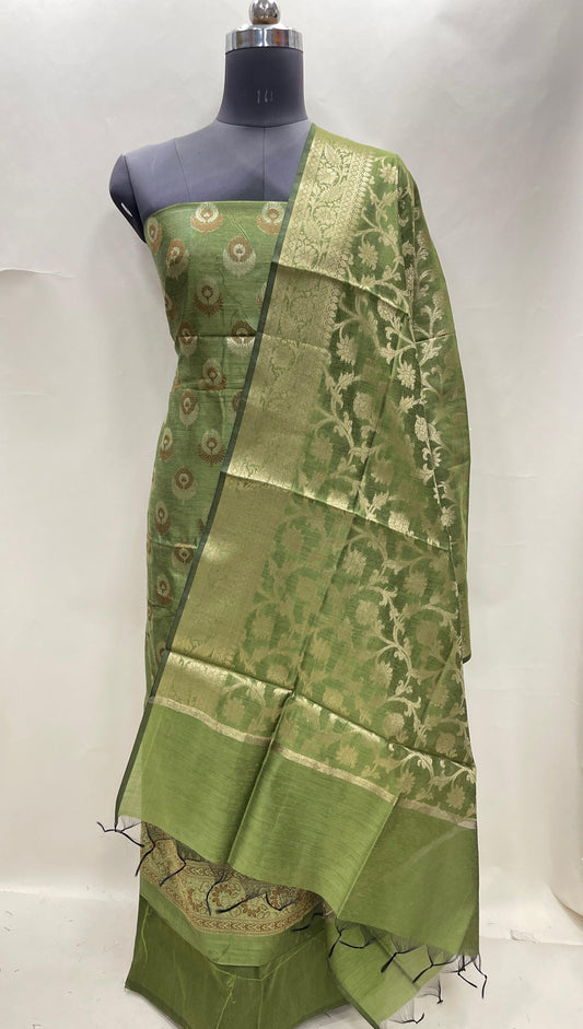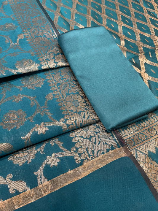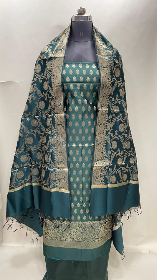 Dark seagreen art silk suit set with floral zari bootas and matching dupatta. SHL_68