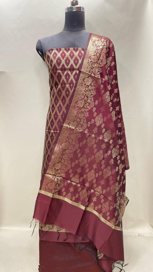 Maroon art silk suit set with floral zari bootas and matching dupatta. SHL_67