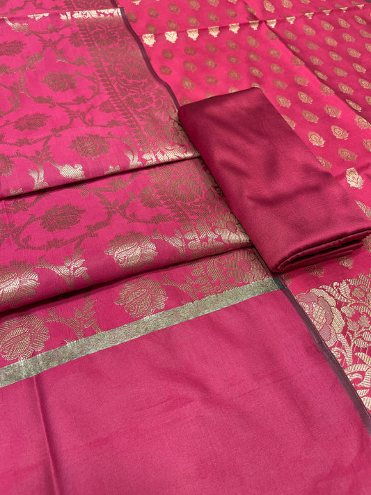Magenta art silk suit set with floral zari bootis and matching dupatta. SHL_58
