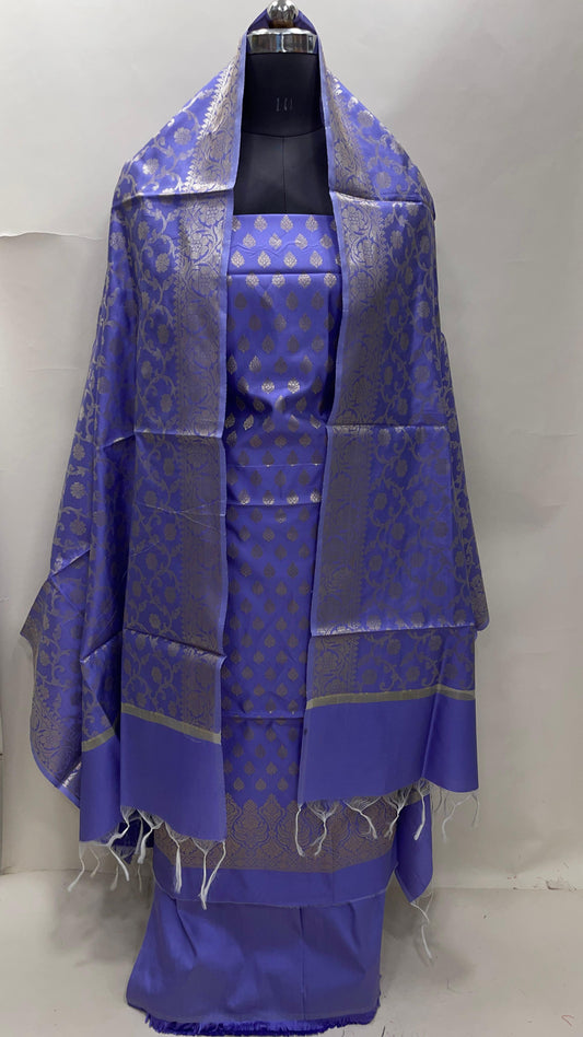 Purple art silk suit set featuring floral zari bootis and matching dupatta. SHL_61