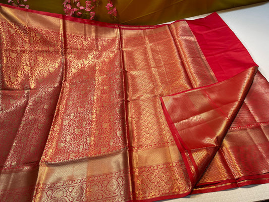 Red Semi Kanchi Silk Floral Zari Jaal Brocade Zari Border Banarasi Saree MS_SK34