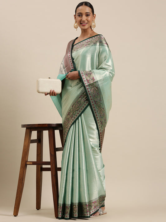 Sea Green Kanchi Silk Banarasi Sarees For Women GEBE10