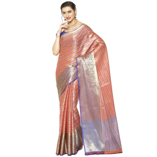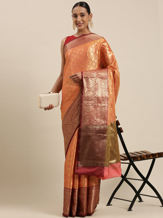 Peach Kanchi Silk Banarasi Sarees For Women GEBE19