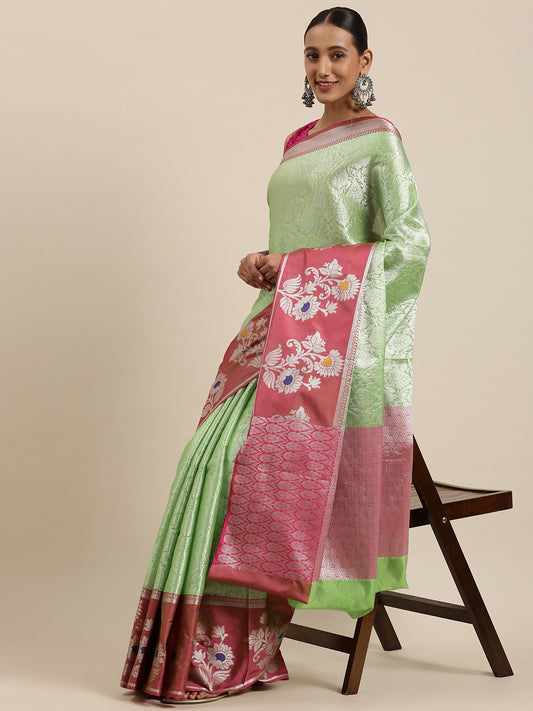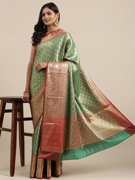 Green Kanjeevaram Banarasi Sarees For Women GEMA9