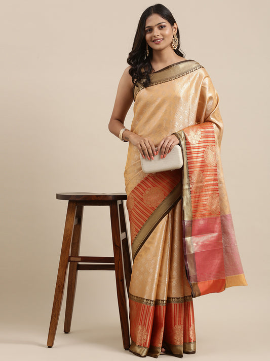 Beige Kanjeevaram Banarasi Sarees For Women GEMA1