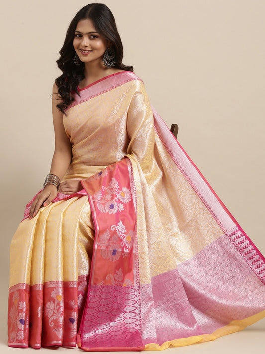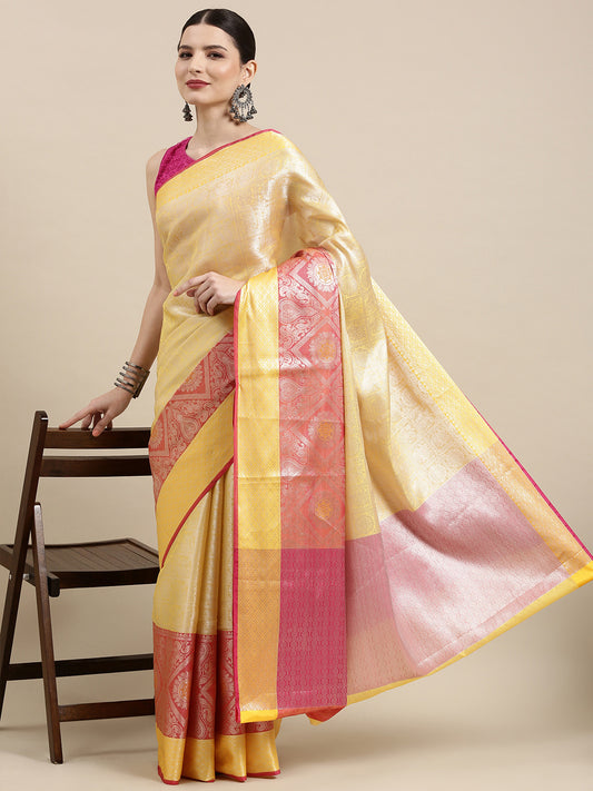 Yellow Kanjeevaram Banarasi Sarees For Women GEMA5