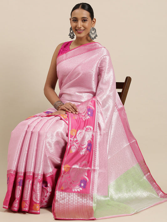 Pink Kanjeevaram Banarasi Sarees For Women GEMA12