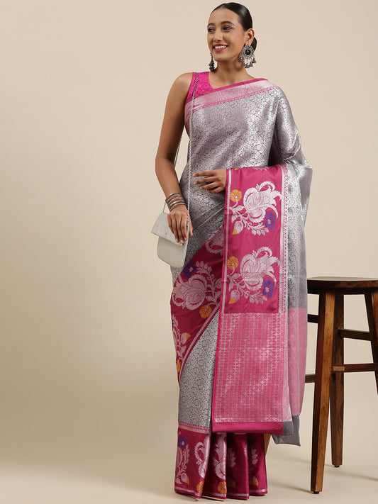 Grey Kanjeevaram Banarasi Sarees For Women GEMA23