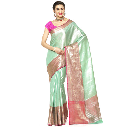 Sea Green Kanchi Silk Banarasi Sarees For Women GEBE22