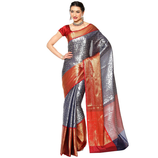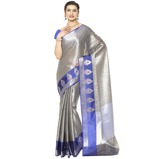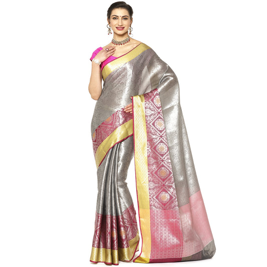 Grey Kanjeevaram Banarasi Sarees For Women GEMA15
