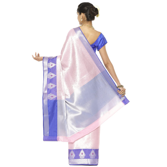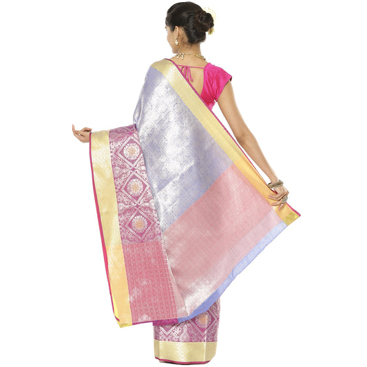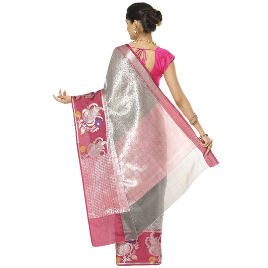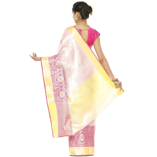 Faishana Presents Zari Pink Kanchi Silk Brocade Contrast Silver Gold Zari Jamawar Border Saree