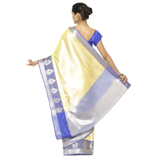 Faishana Presents Gold Zari Kanchi Silk Brocade Contrast Silver Gold Jamawar Border Banarasi Saree