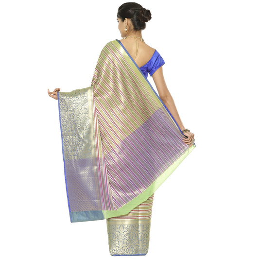 Faishana Presents Light Green Zari Kanchi Silk Brocade Contrast Zari Pattu Border Banarasi Saree