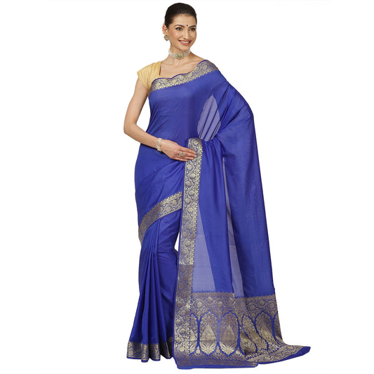 Faishana Presents Blue Valkalam Katan Silk Plain Anchal Zari Border Banarasi Saree