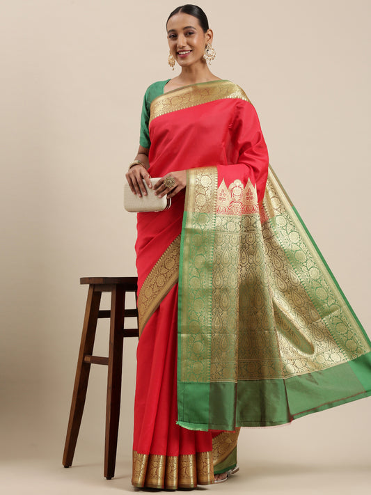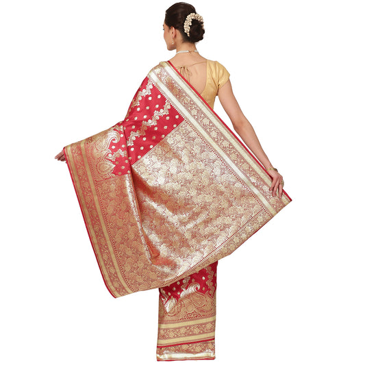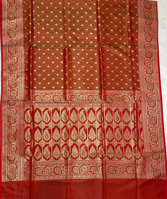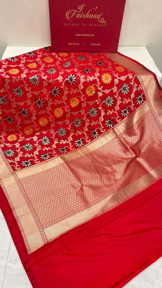 Faishana Presents Red Katan Silk Floral Mina Zari Jaal Boota with Banarasi Zari Border and Red Blouse