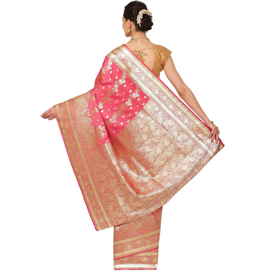 Faishana Presents Pink Katan Silk Floral Mina Zari Jaal Boota with Banarasi Zari Border and Pink Blouse