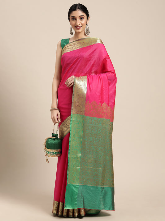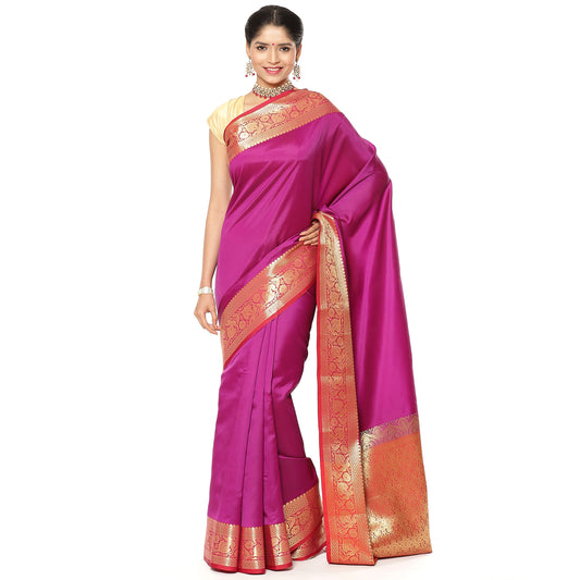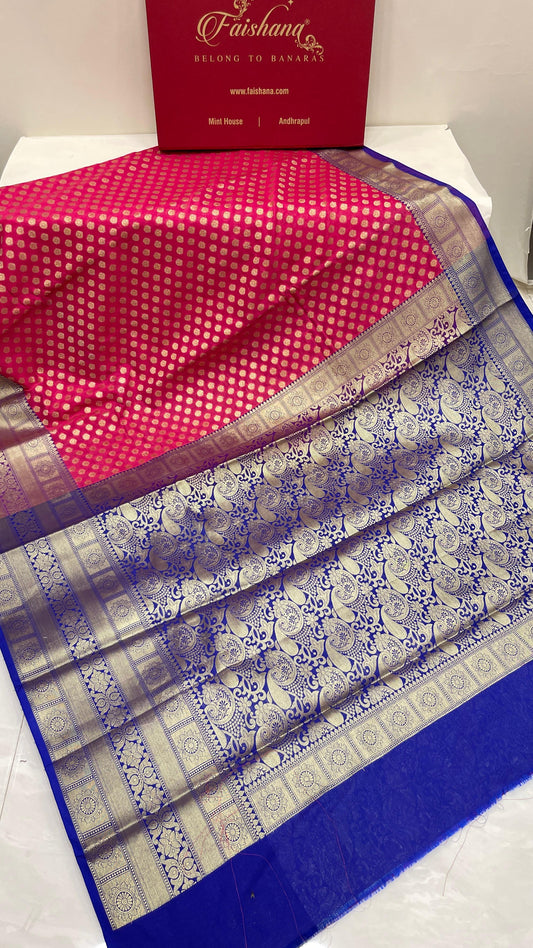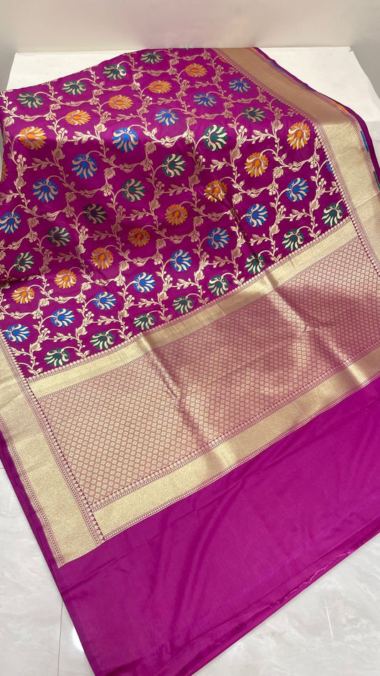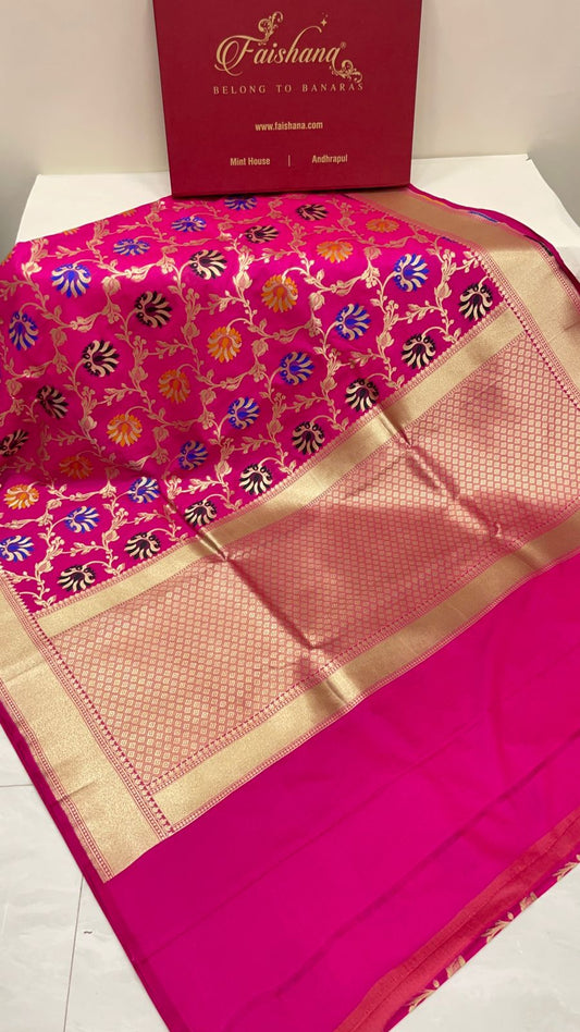 Faishana Presents Magenta Katan Silk Floral Mina Zari Jaal Boota with Banarasi Zari Border and Magenta Blouse