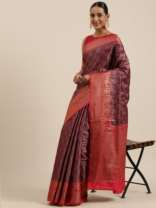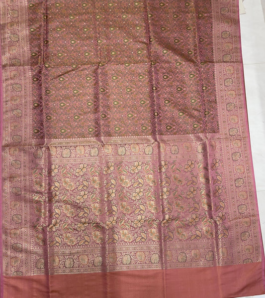 Faishana Presents Mauve Katan Silk Tanchoi Floral Zari Mina Jaal with Banarasi Floral Minakari Zari Border and Big Boota Pallu with Mauve Blouse