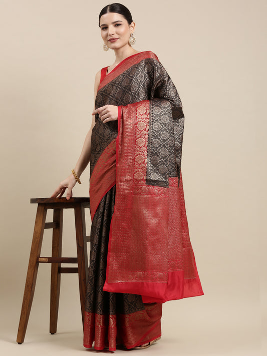 Black Cotton Blend Banarasi Sarees For Women GECT23