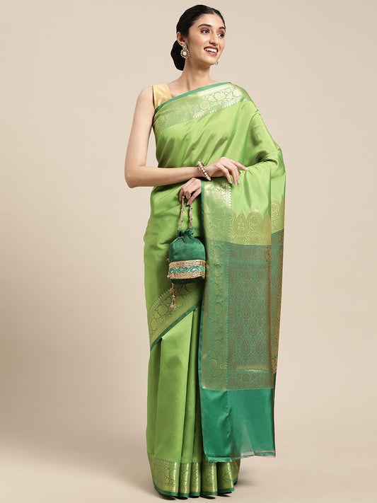 Green Valkalam Katan Silk Banarasi Sarees For Women GEKH30