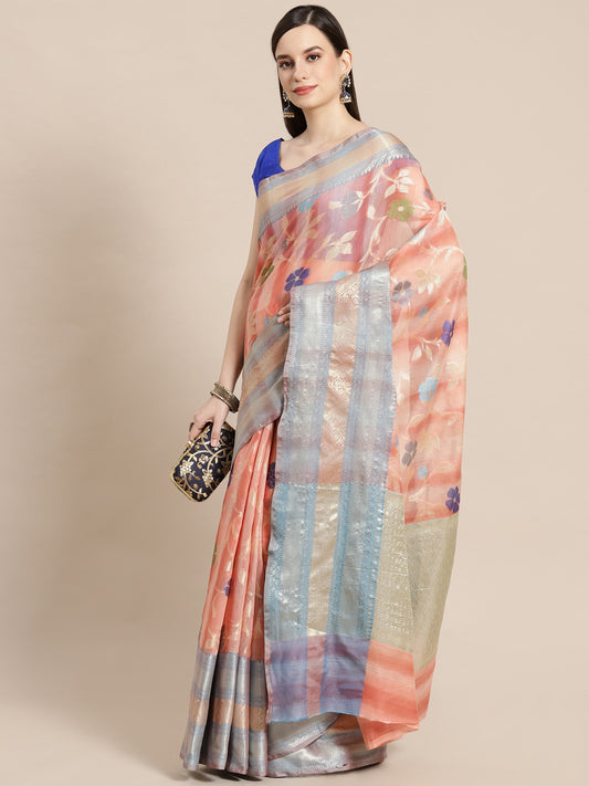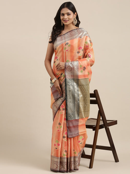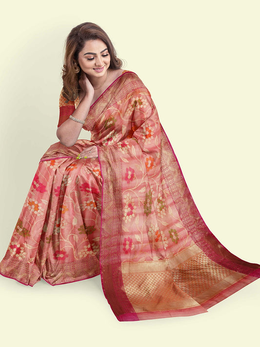 Peach Matka Silk Banarasi Sarees For Women GEMTKSLK_100
