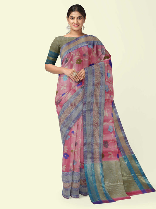 Pink Matka Silk Banarasi Sarees For Women GEMTKSLK_141