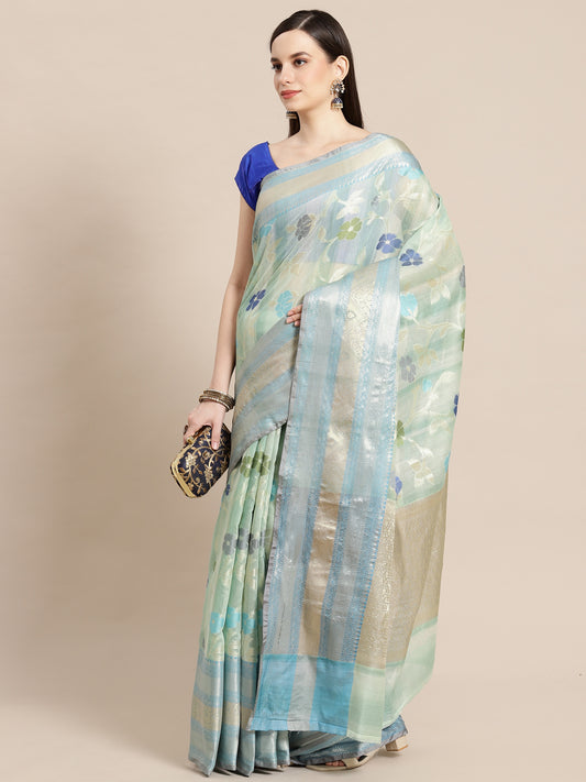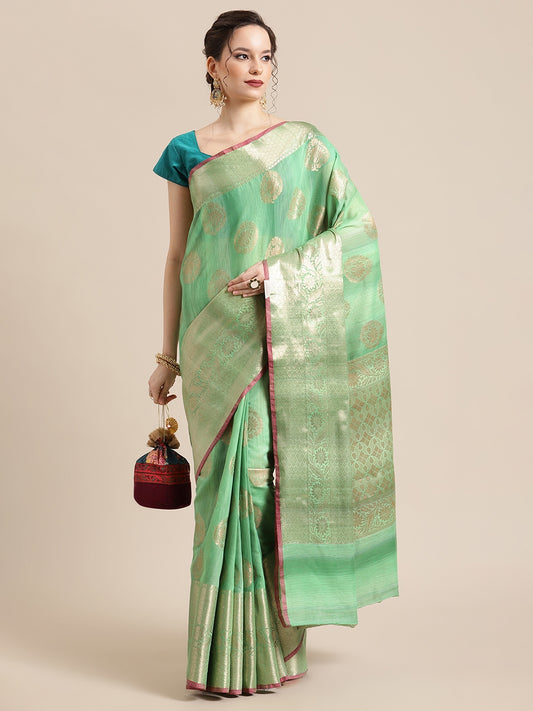 Sea Green Matka Silk Banarasi Sarees For Women GEMTKSLK_101