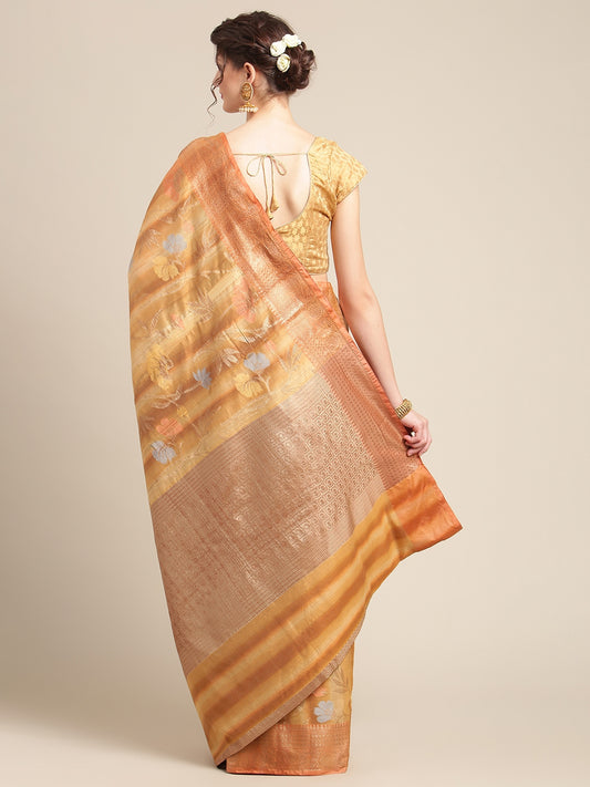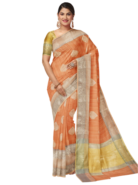 Orange Matka Silk Banarasi Sarees For Women GEMTKSLK_3