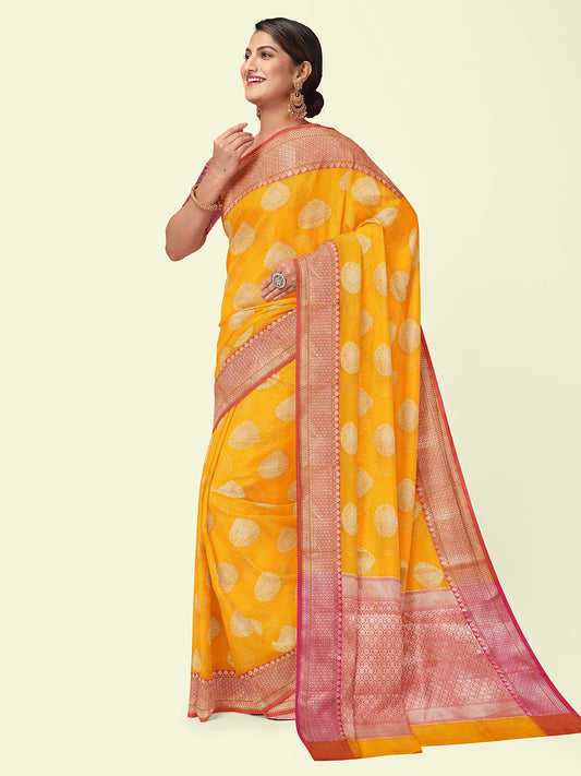 Yellow Matka Silk Banarasi Sarees For Women GEMTKSLK_305