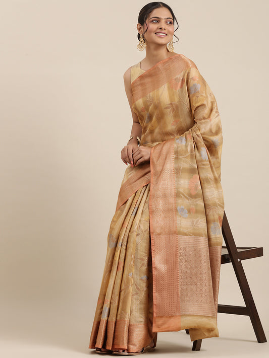 Faishana Presents Handwoven Brown Matka Silk Tilfi Jaal Zari Border With Brown Blouse Banarasi Saree