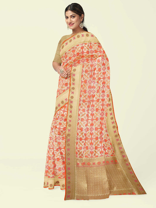 Faishana Presents Peach Kora Cotton Chunri Booti With Peach Blouse Banarasi Saree