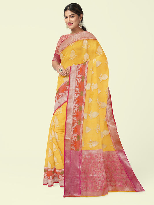 Yellow Cotton Blend Banarasi Sarees For Women GEHKR 73