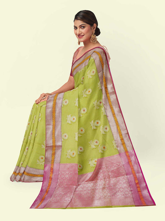 Green Cotton Blend Banarasi Sarees For Women GEHKR 5
