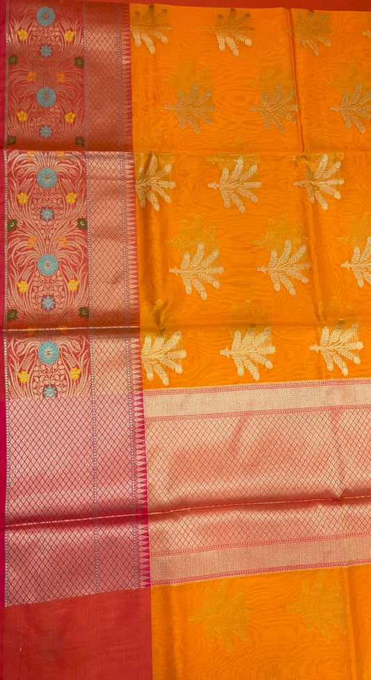 Yellow Organza Silk Floral Resham Booti with Embroidery Border Banarasi Saree MS_OG1
