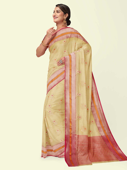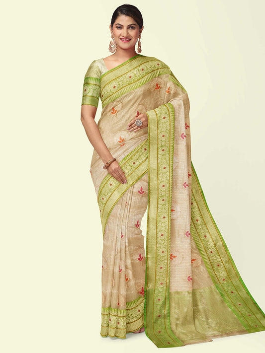 Beige Cotton Blend Banarasi Sarees For Women GEHKR 20