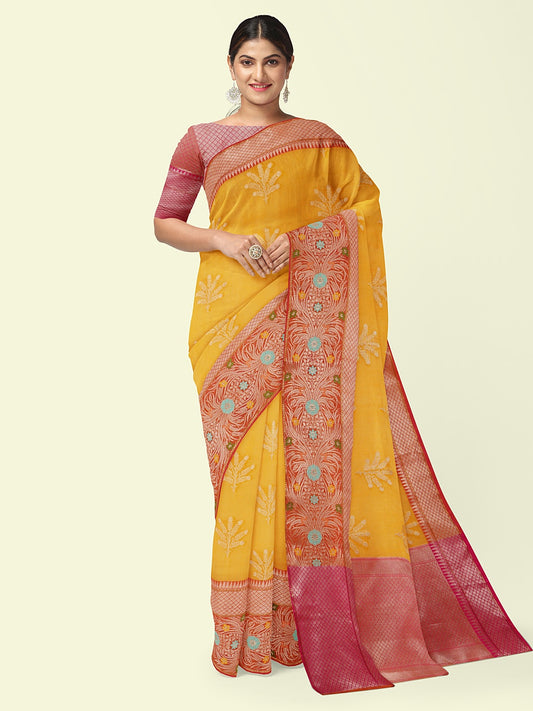 Yellow Cotton Blend Banarasi Sarees For Women GEHKR 30