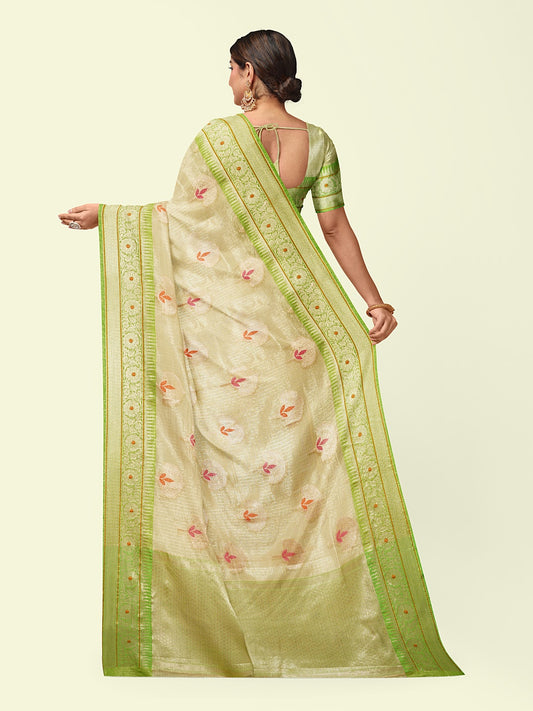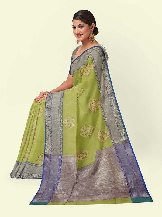 Green Organza Silk Floral Resham Booti with Embroidery Border Banarasi Saree MS_OG2