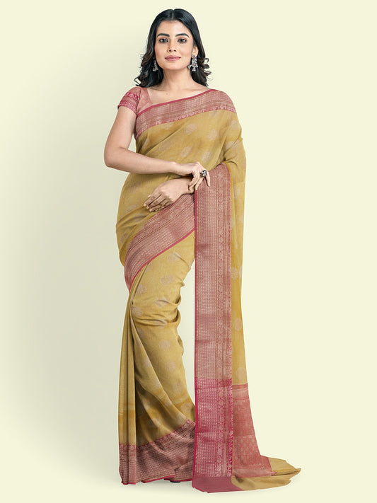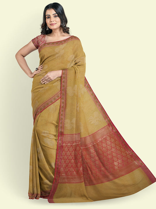 Gold Cotton Blend Banarasi Sarees For Women GEHKR 42